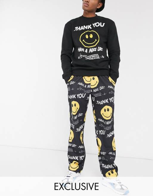 Chinatown Market Smiley Twisted Have A Nice Day Lightweight Woven Pants In Black Asos