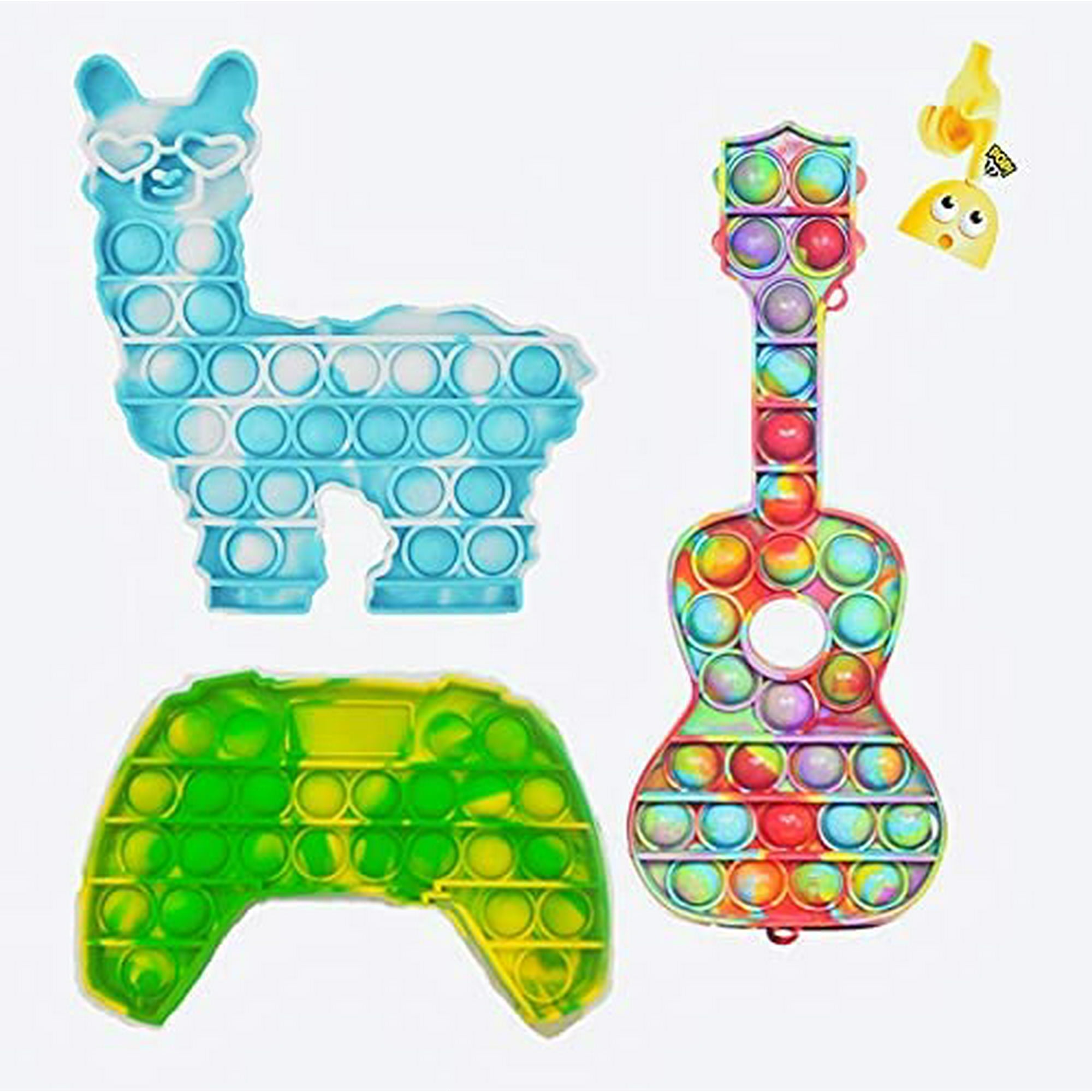 3 Pack Push Pop It Sensory Fidget Toys Alpaca Controller And Guita Shaped Silicone Push Bubble Popper Anxiety Toy Silicone Brain Game For Kids Adults Time Killing Leisure Office Travel Home Trio 1