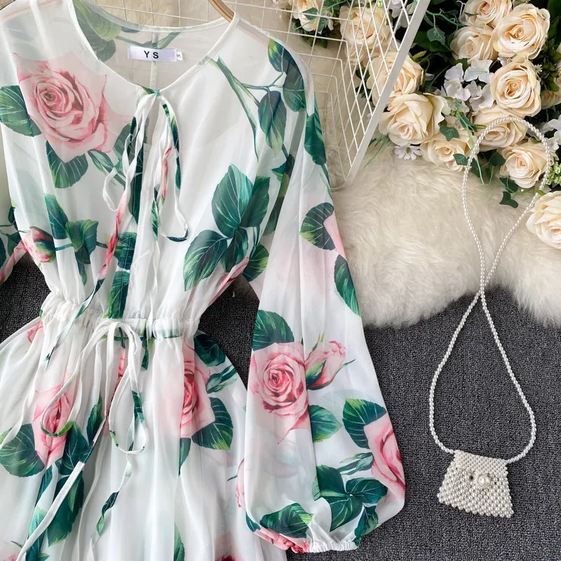 Women S Dress Super Fairy Floral Dresses Women Slim High Waist Evening Vestido Female 2021 Dresses Aliexpress